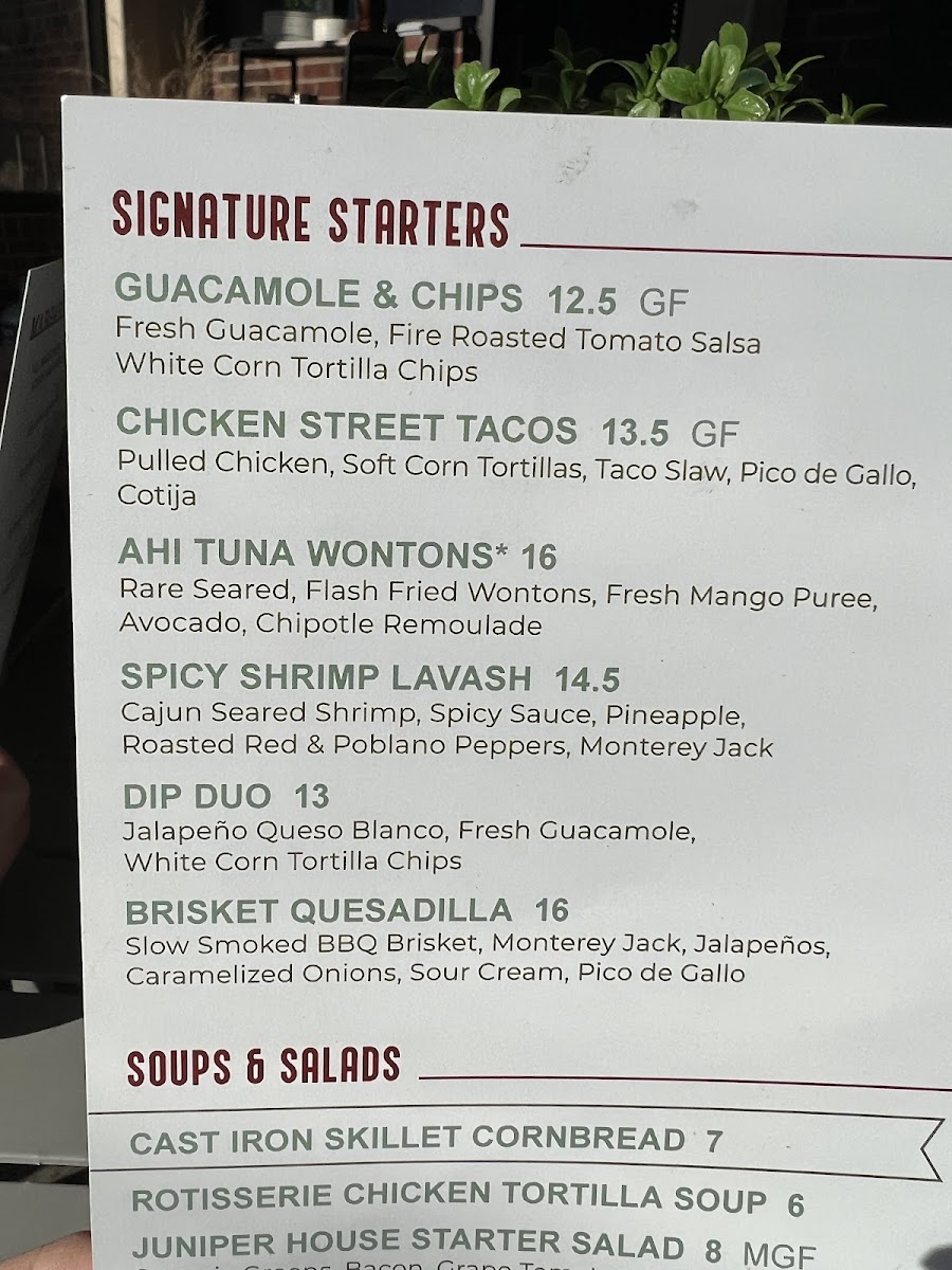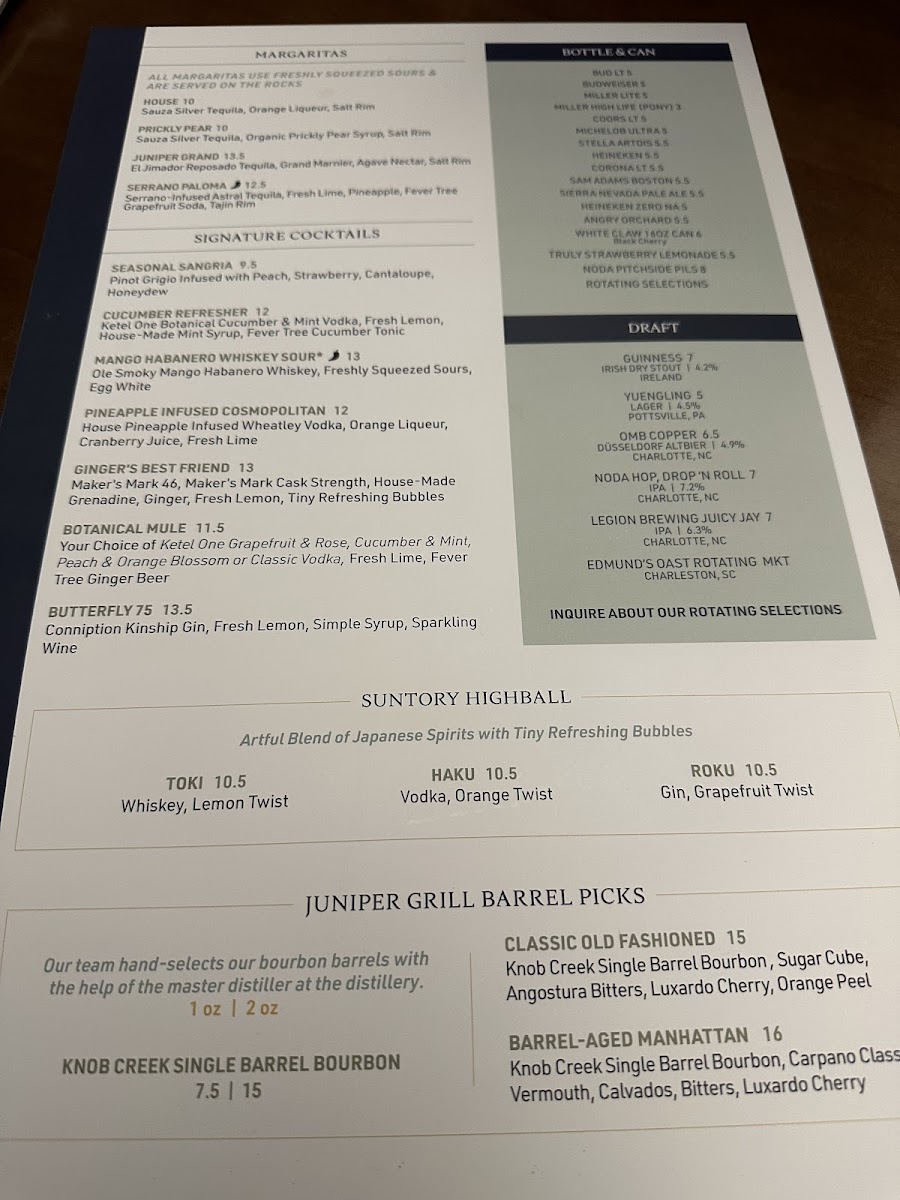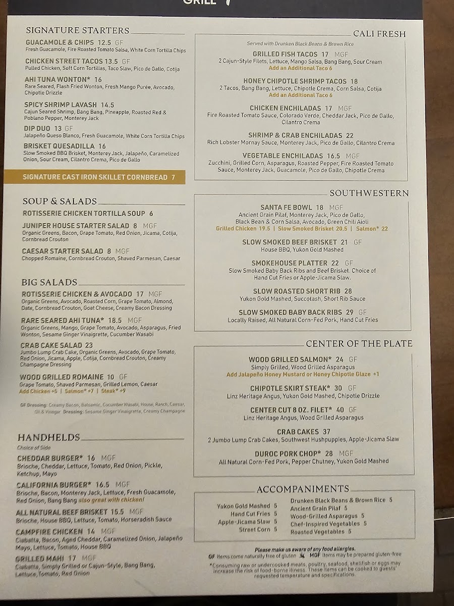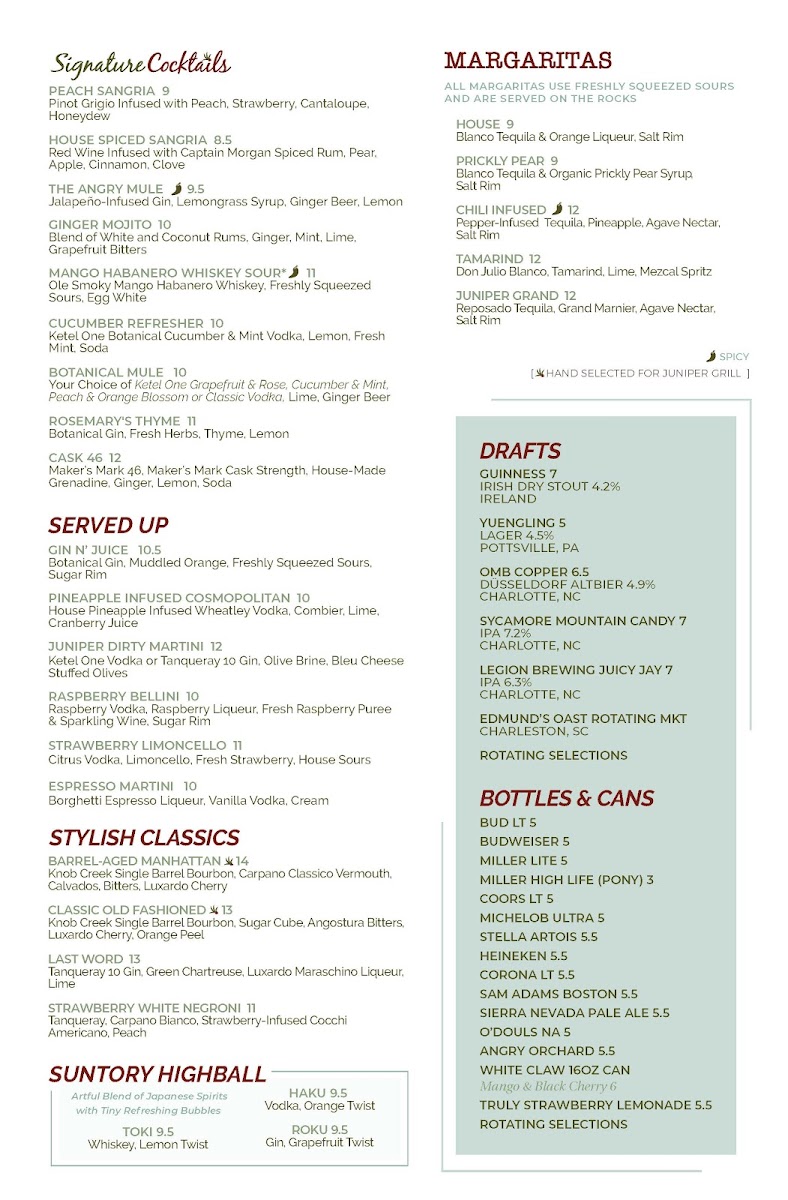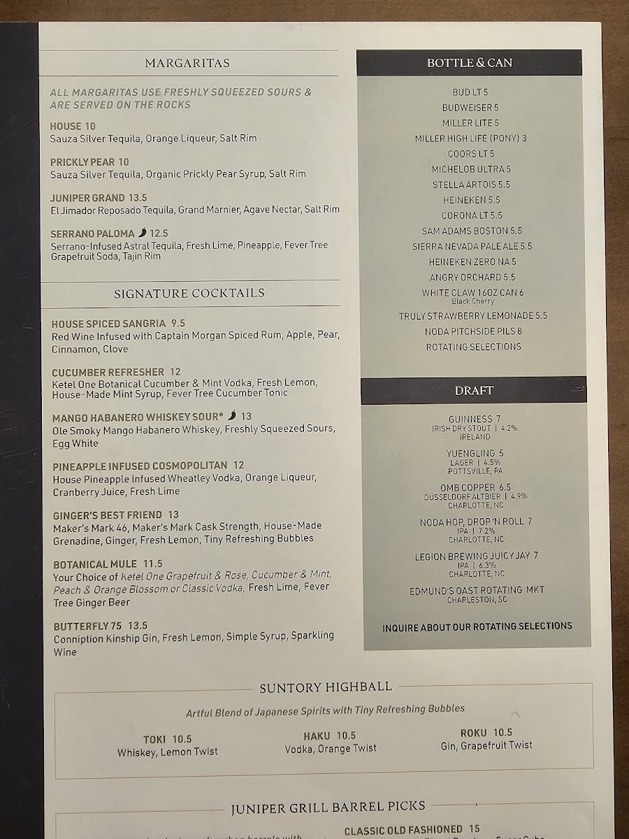Juniper Grill - Ballantyne Menu