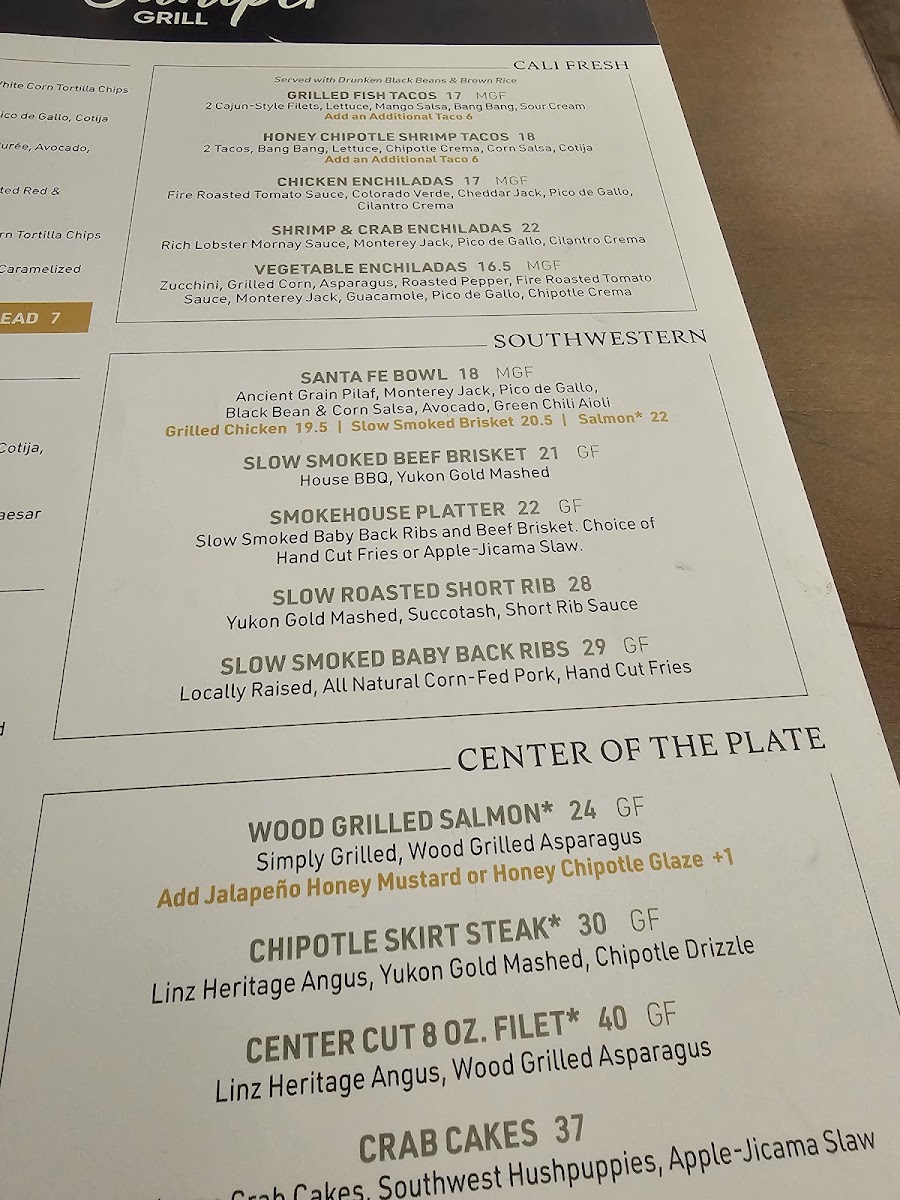You’ll find a variety of options from fresh, vibrant salads like the Seared Ahi Tuna or Crab Cake Salad, to hearty mains such as the Chipotle Skirt Steak and Shrimp & Crab Enchiladas. Handheld favorites like the California Burger or Honey Chipotle Shrimp Tacos provide satisfying choices for those seeking something flavorful and easygoing.